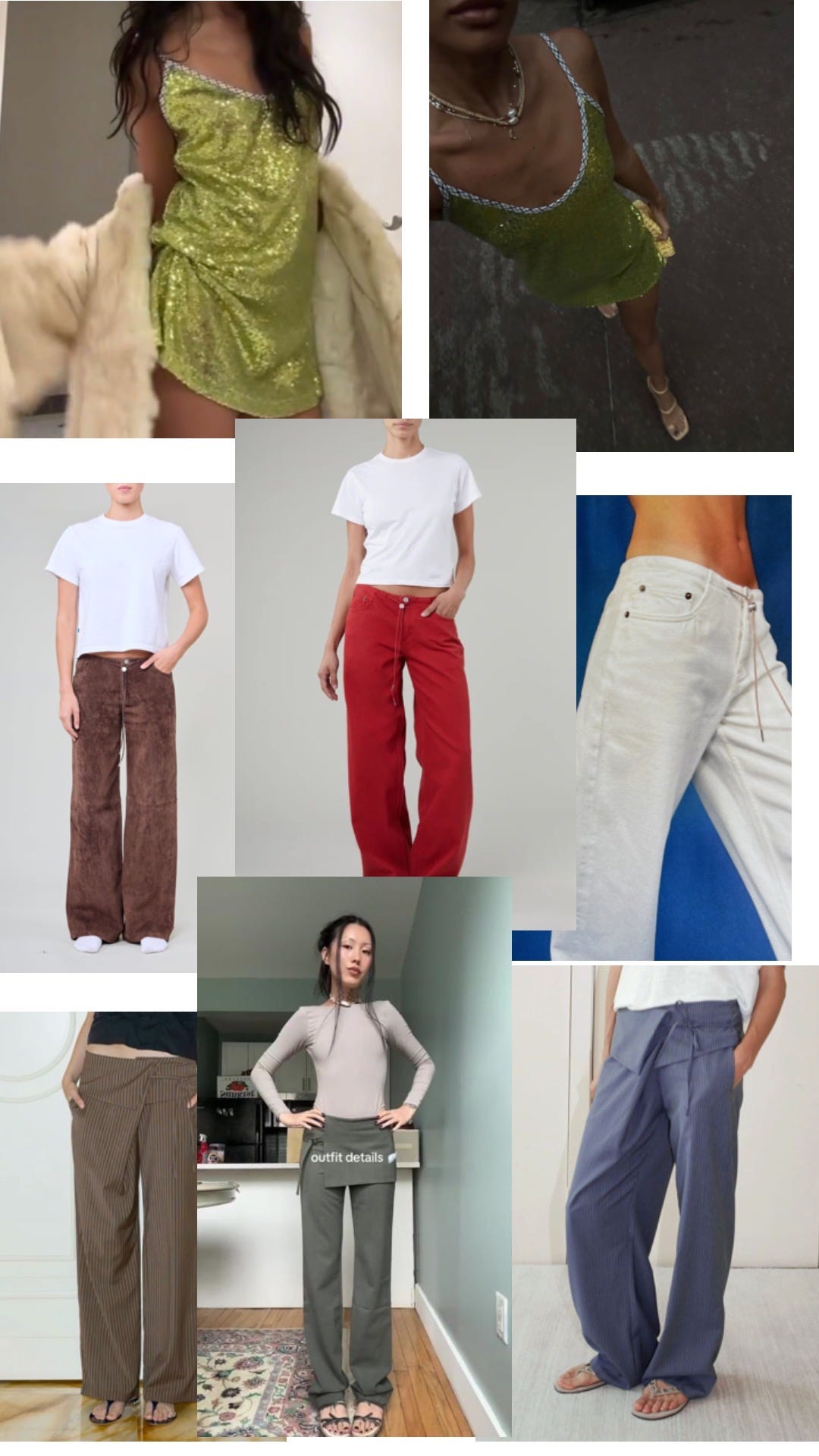 Bottom row: fold over skirt pants have been on the brain lately. The first pair is Deiji Studios, middle is Paloma wool, not sure the third but all these are so cute to me and office siren