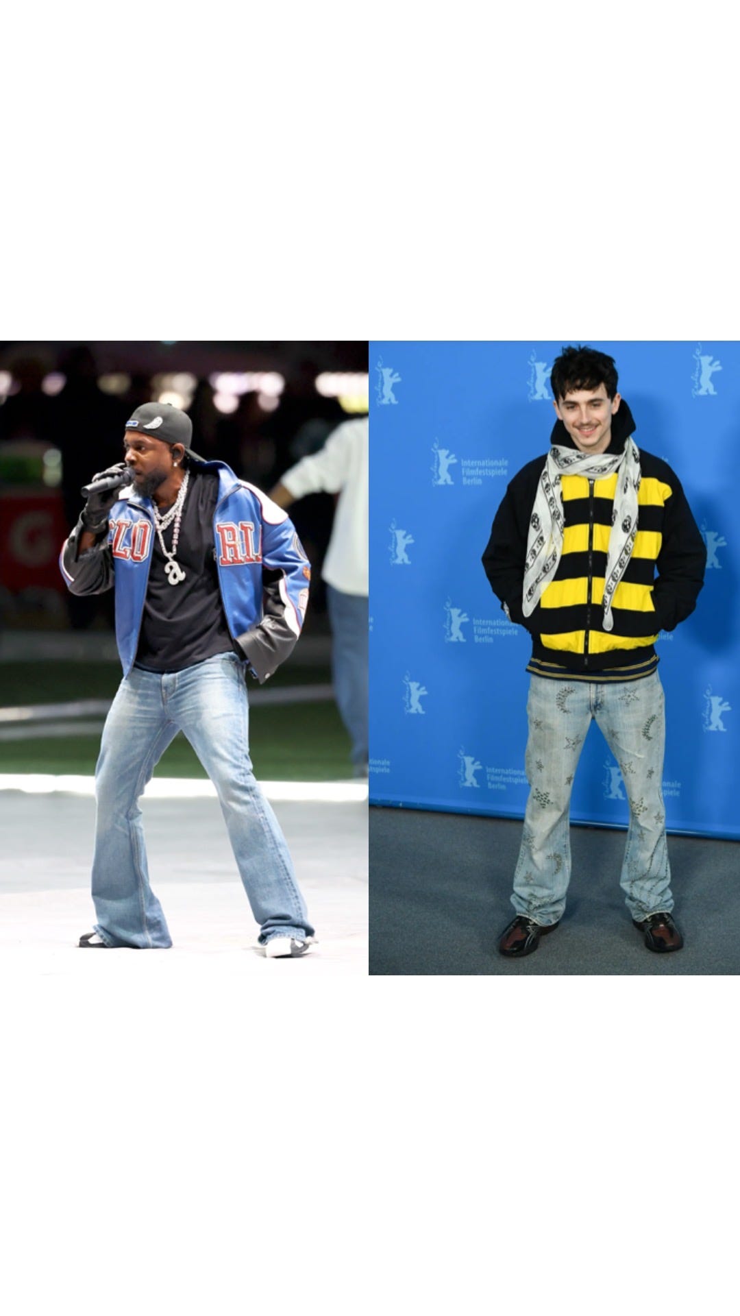 Don’t be fooled by the title this will have nothing to do with the news or anything like that, it’s just about what’s going on with my world and what I have been seeing and been inspired by or caused a jaw drop speechless moment. This is from a while ago but for this week, it’s Kendrick Lamar’s jeans at the Super Bowl. They were so epic and I want a pair. He and Timmy Chalamet have the same stylist (@taylor__mcneill) and apparently the jeans were originally meant for Timmy. Here is a reminder of how fly Kendrick looked, and next to him the same pair of pants later bedazzled for Timothee Chalamet.