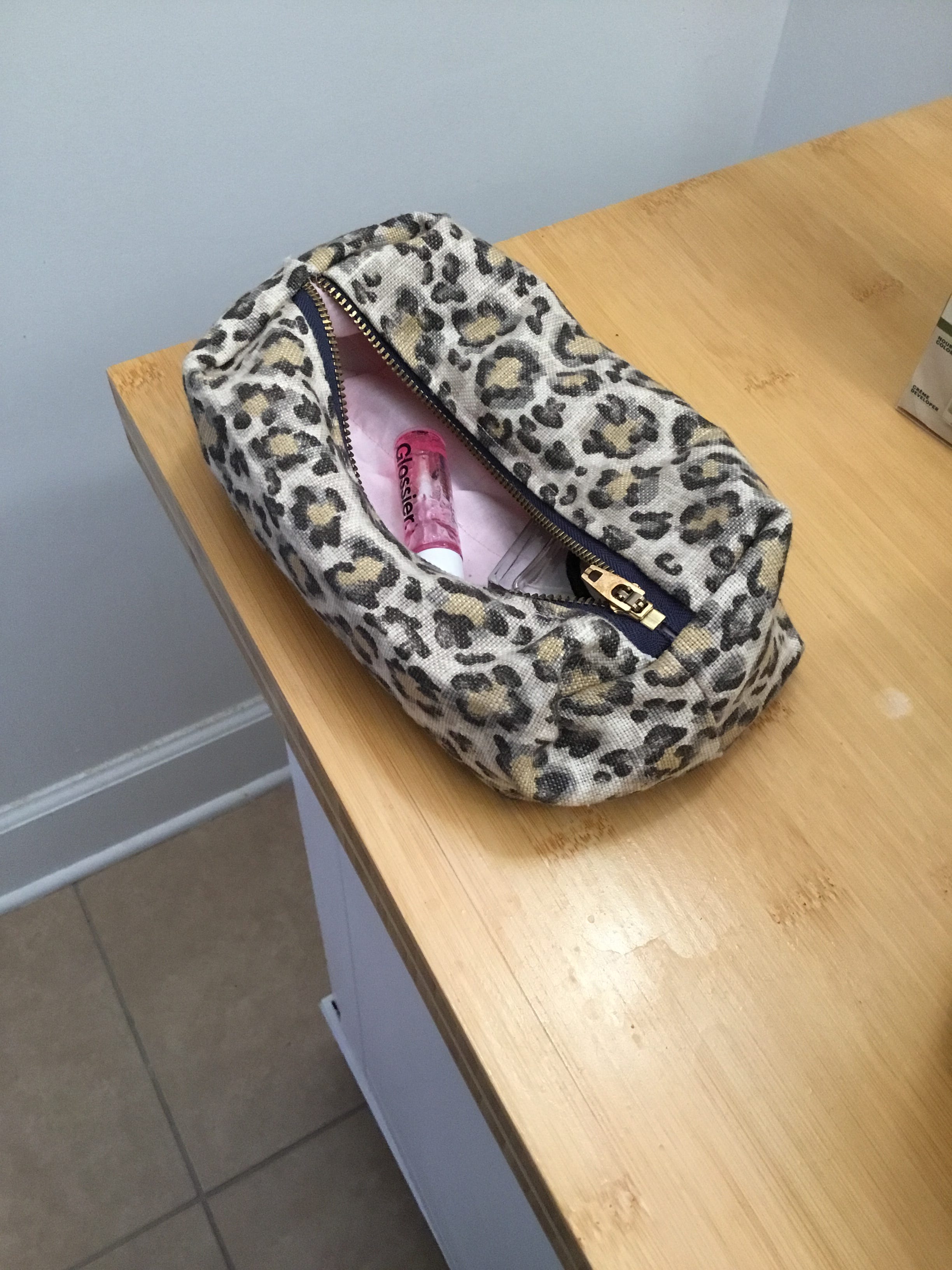 I am trying to sew one thing a week because sometimes I don’t touch my machine for months and I need to be more creative (frickin 9 to 5). This last week all I did was hem my bike shorts that were too long so that’s kind of boring, but here’s a little makeup case I made some weeks ago:
